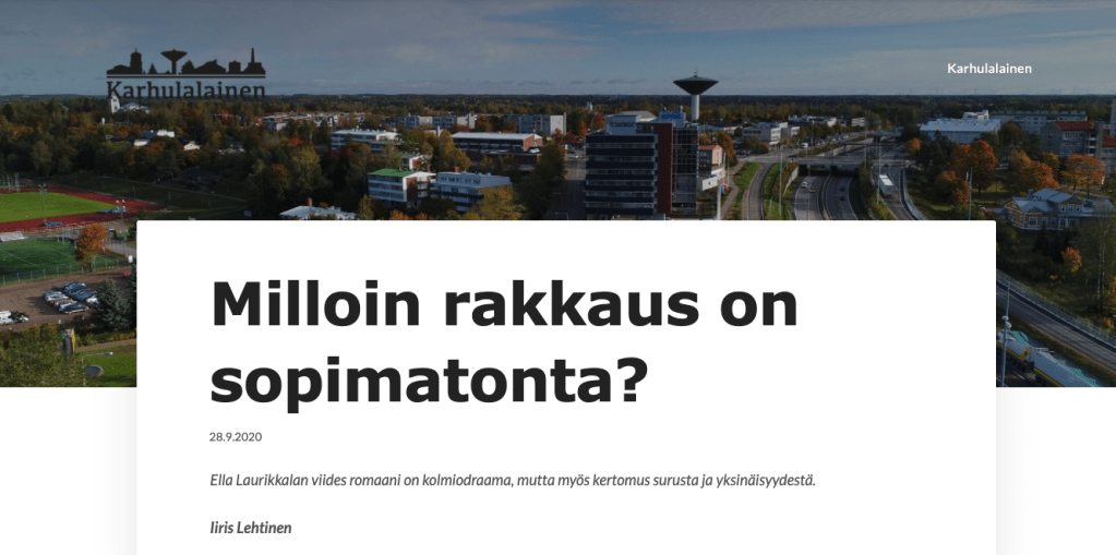 Muualla YouTube: Vuoden 2023 suosikit Kirja-arvostelu: ’Isä, poika ja pojan vaimo’ (Karhulalainen) Pyhtäänlehti 10.8.2022, s.3 Pyhtäälehti 22.12.2023