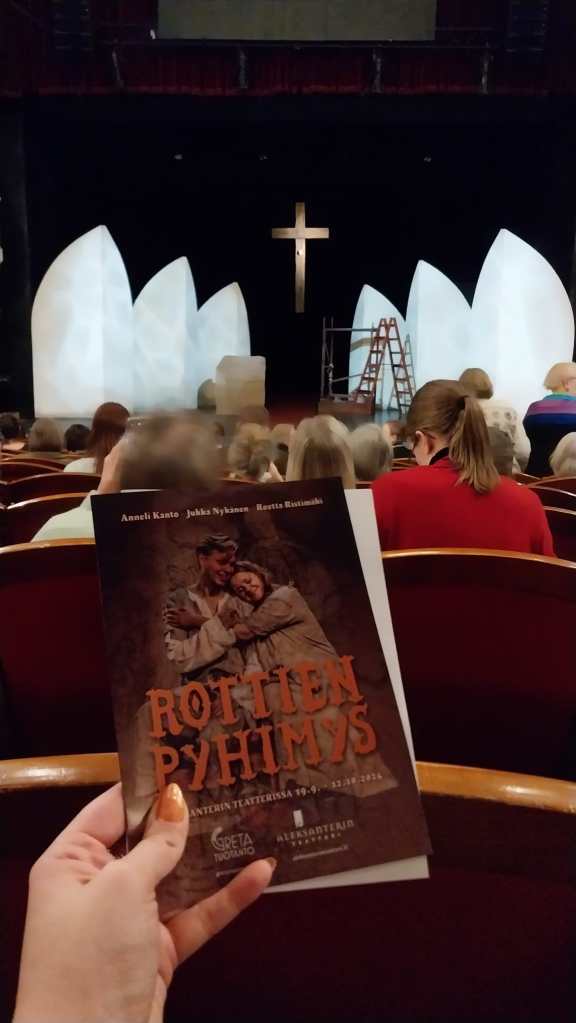 Syksyni on teatterien osalta hiljaisempi kuin kevät, koska kirjatapahtumat vievät syksyisin niin ison osan vapaa-ajasta, mutta muutaman esityksen ehdin kuitenkin katsastamaan.